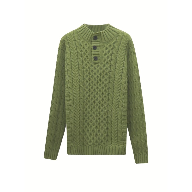 All Match Knitted Cable Sweater, Men's Casual Warm Middle Stretch Stand Collar Pullover Sweater For Fall Winter