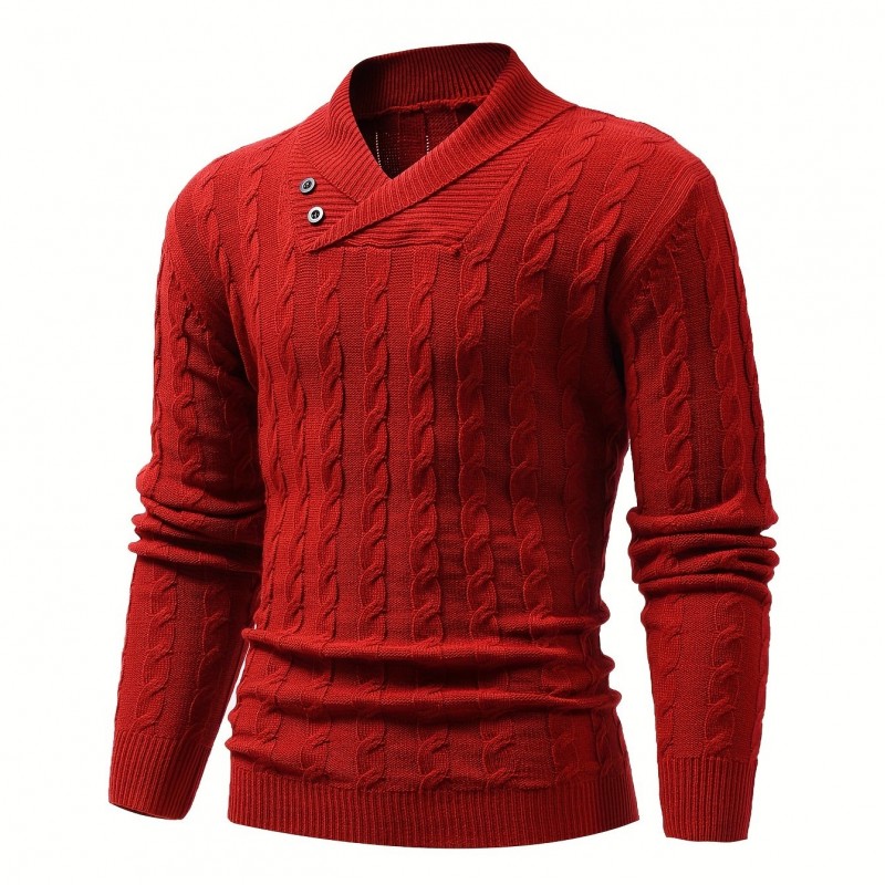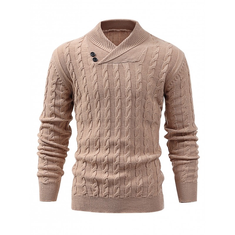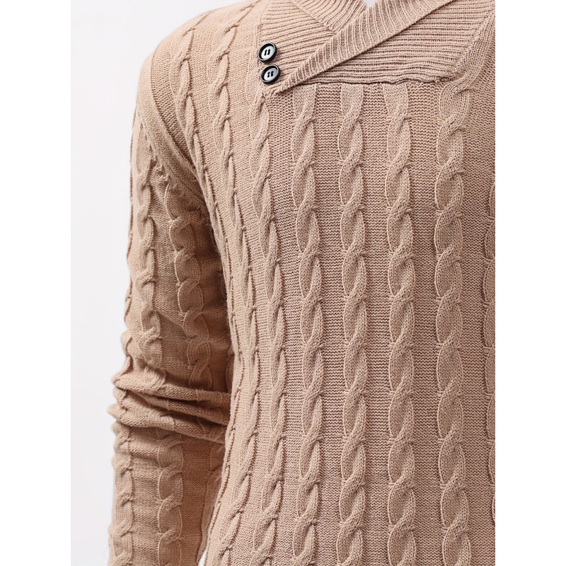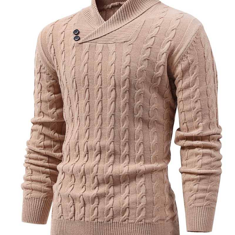 all match knitted shawl collar sweater mens casual warm high stretchy pullover sweater for fall winter details 0