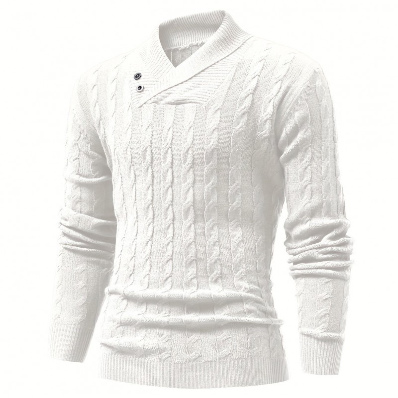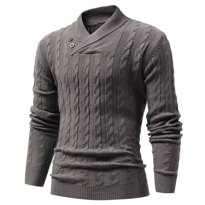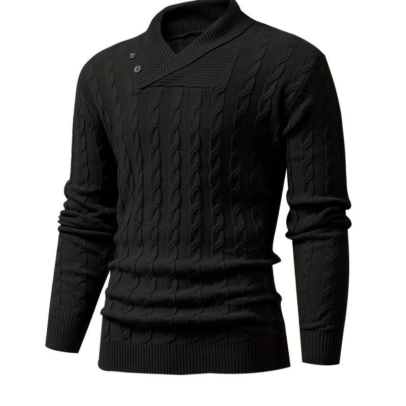 All Match Knitted Shawl Collar Sweater, Men's Casual Warm High Stretchy Pullover Sweater For Fall Winter