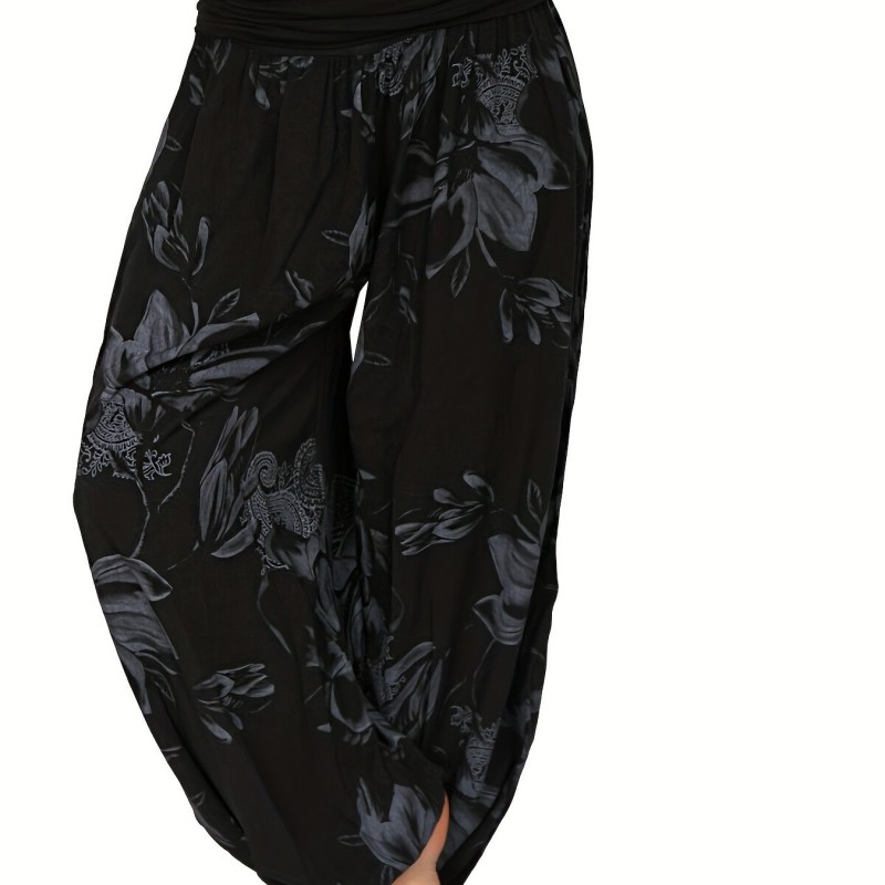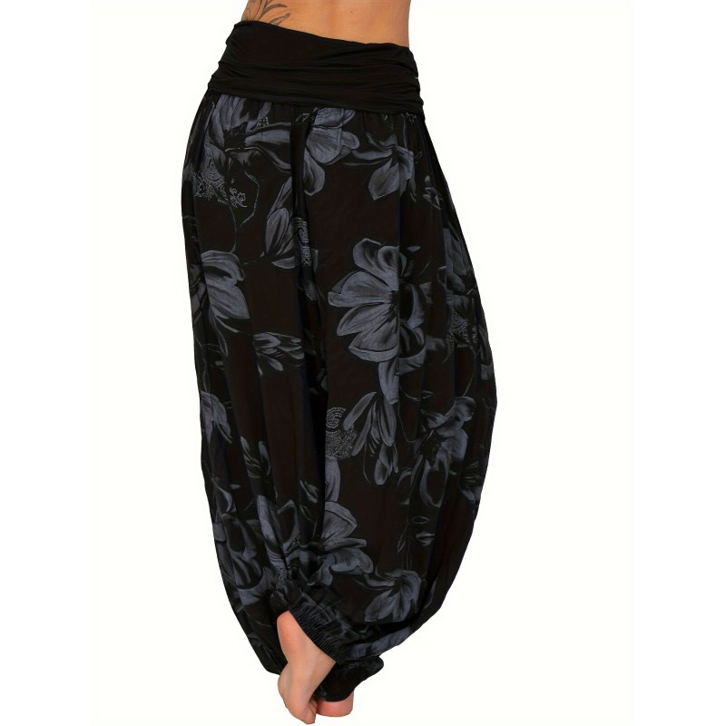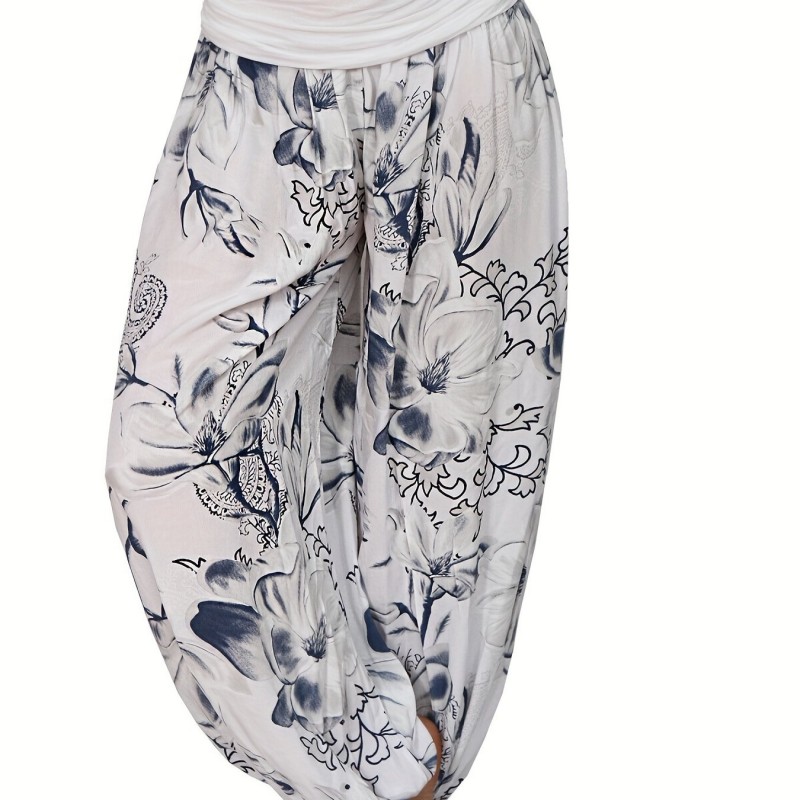 Boho Floral Print Pants, High Waist Summer Vacation Baggy Harem Pants, Women's Clothing