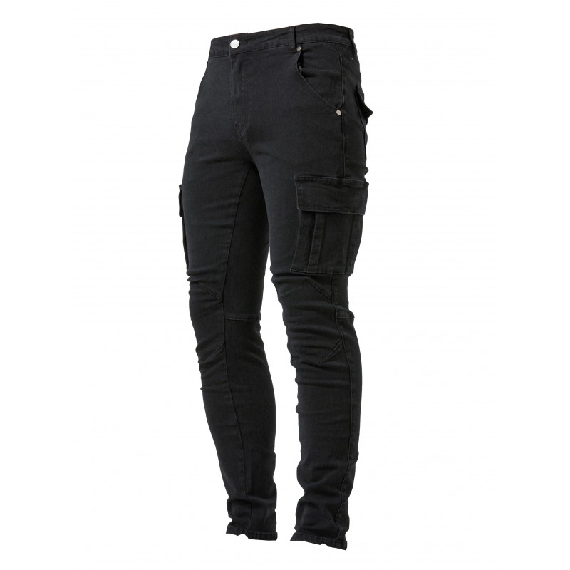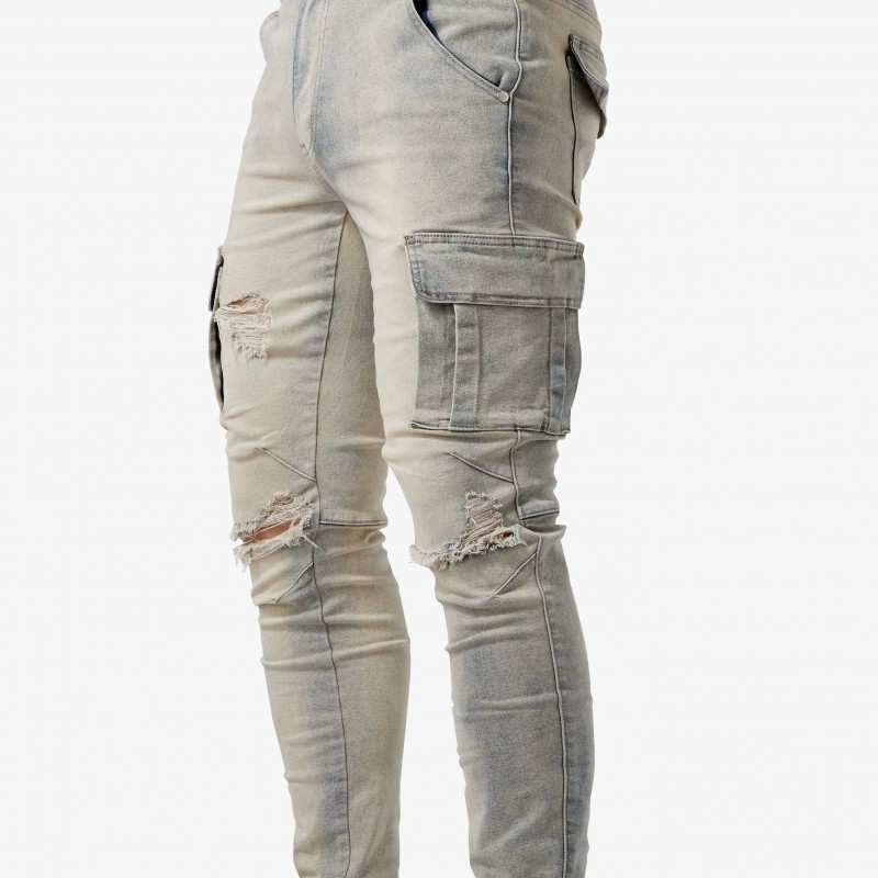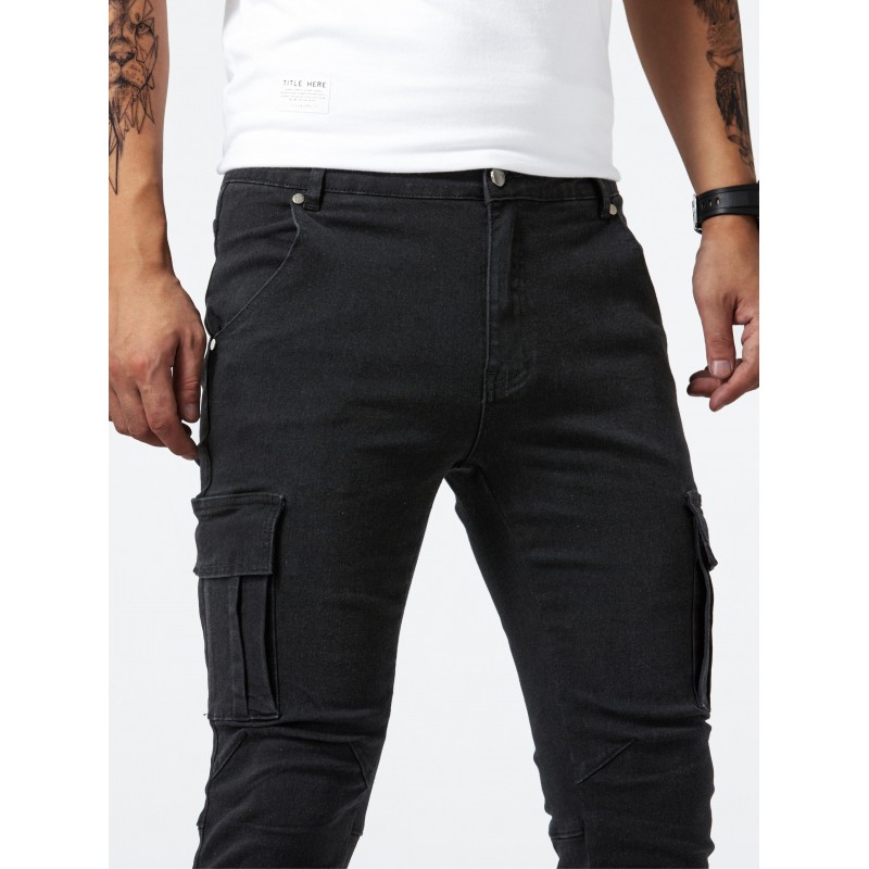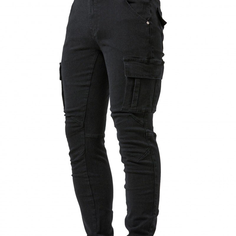 mens casual multi pocket jeans street style medium stretch denim pants details 1