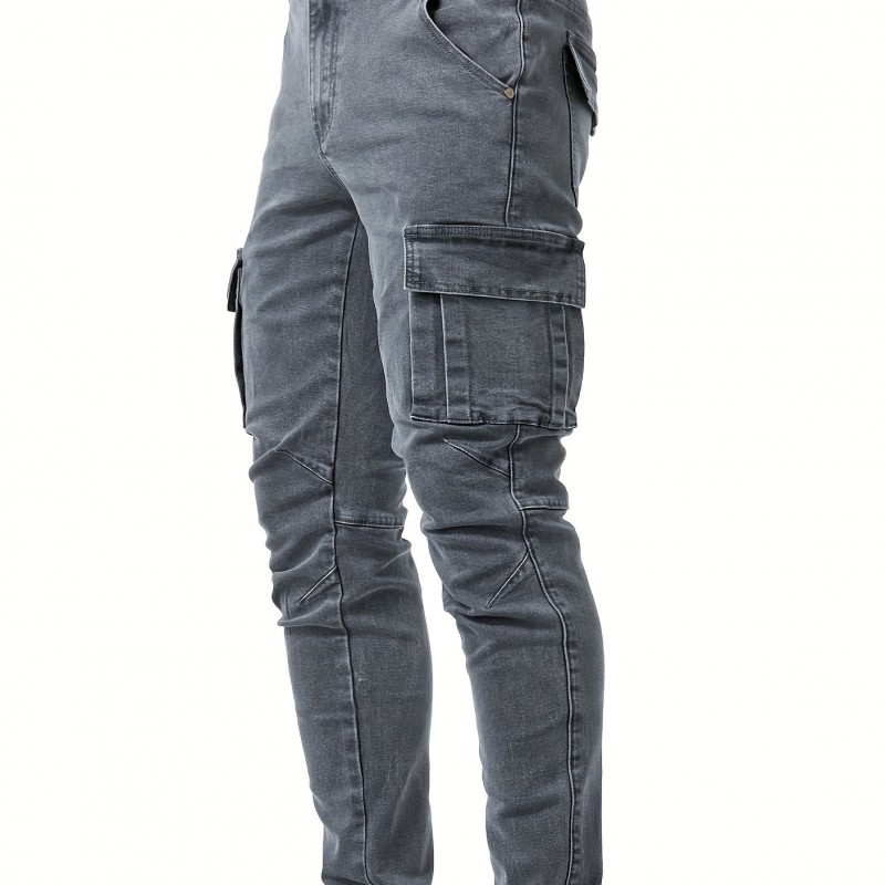 Men's Casual Multi Pocket Jeans, Street Style Medium Stretch Denim Pants