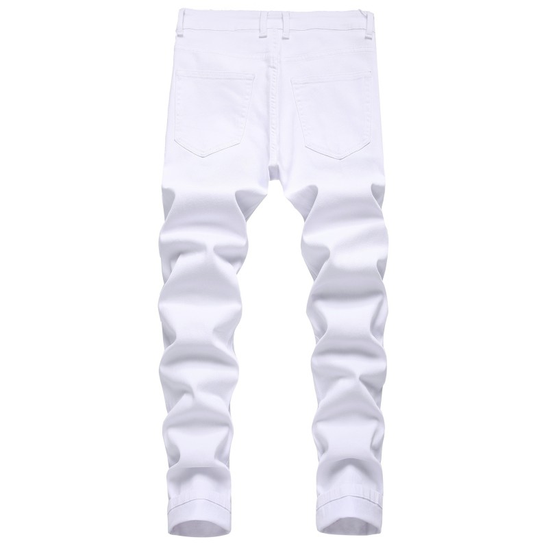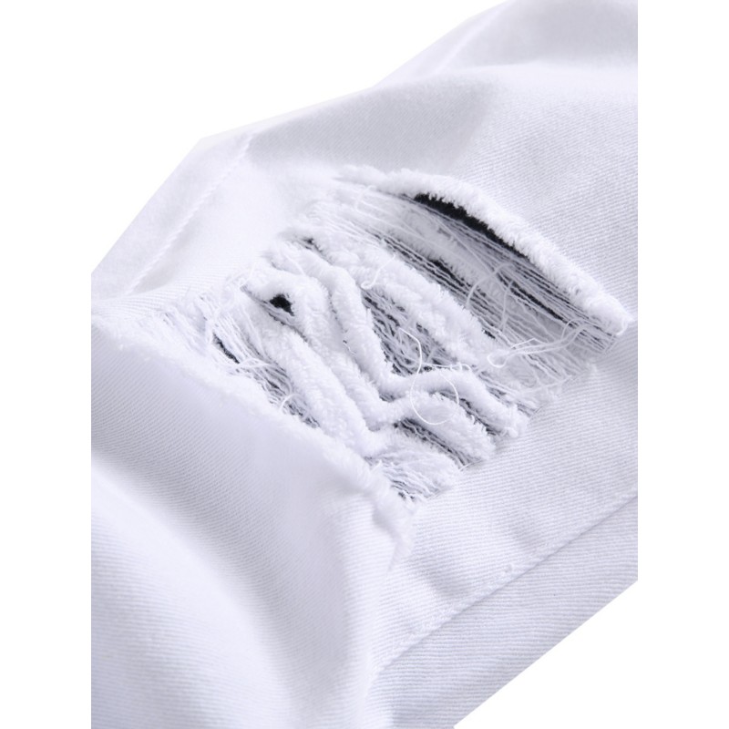 Men's Casual Ripped Slim Fit White Cotton Jeans