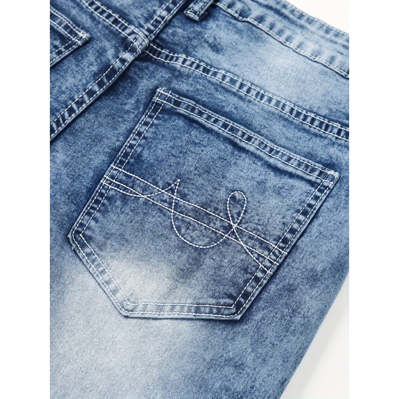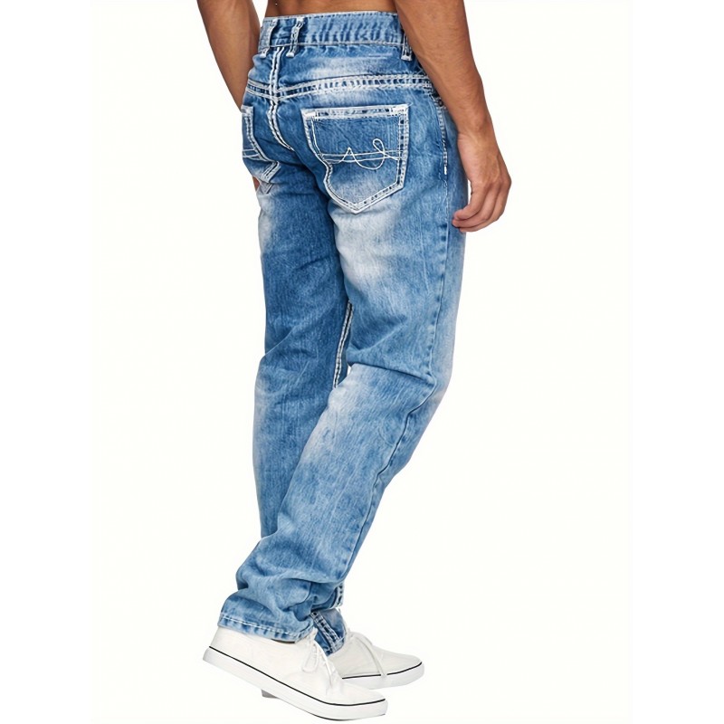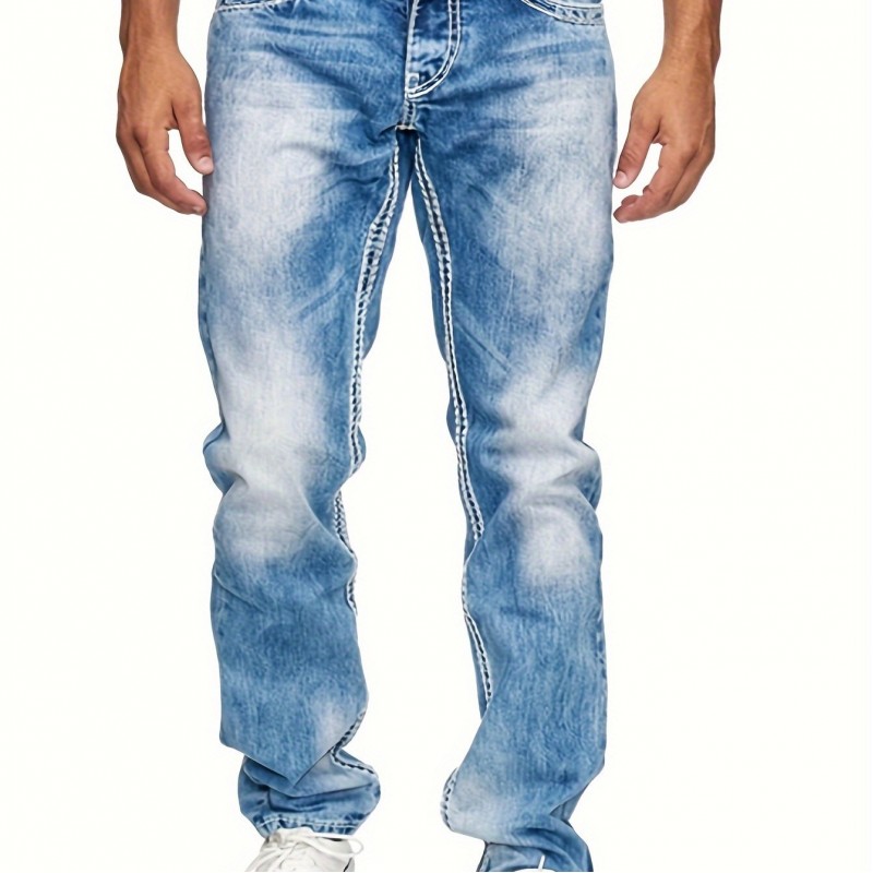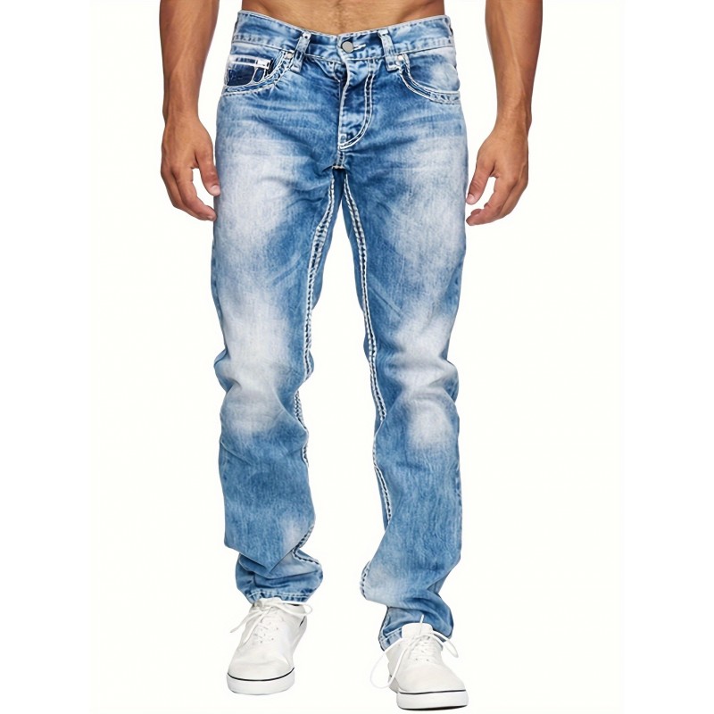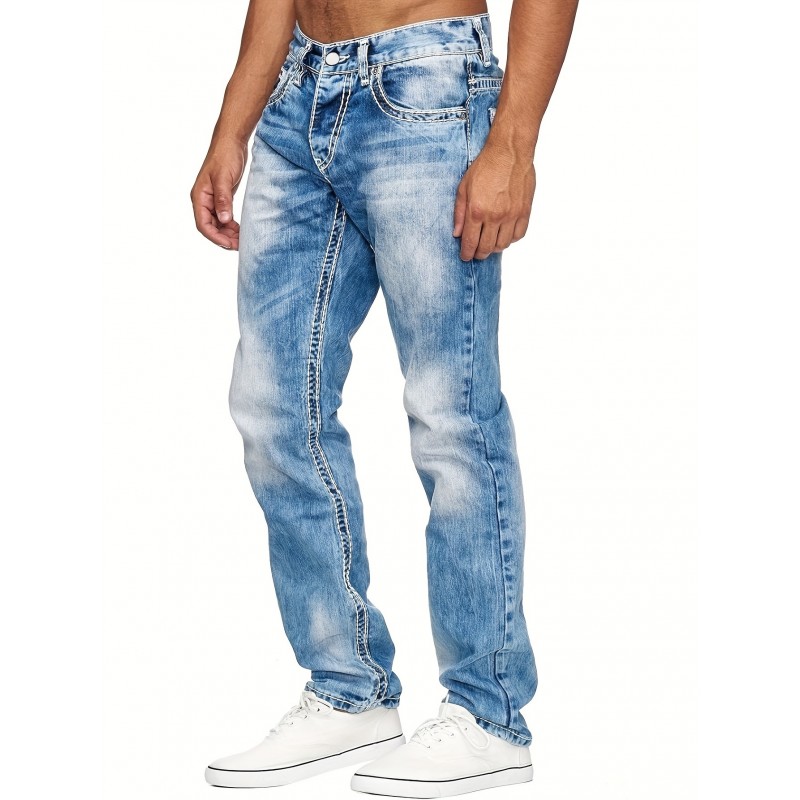 Men's Casual Slim Fit Stretch Jeans, Chic Street Style Distressed Denim Pants