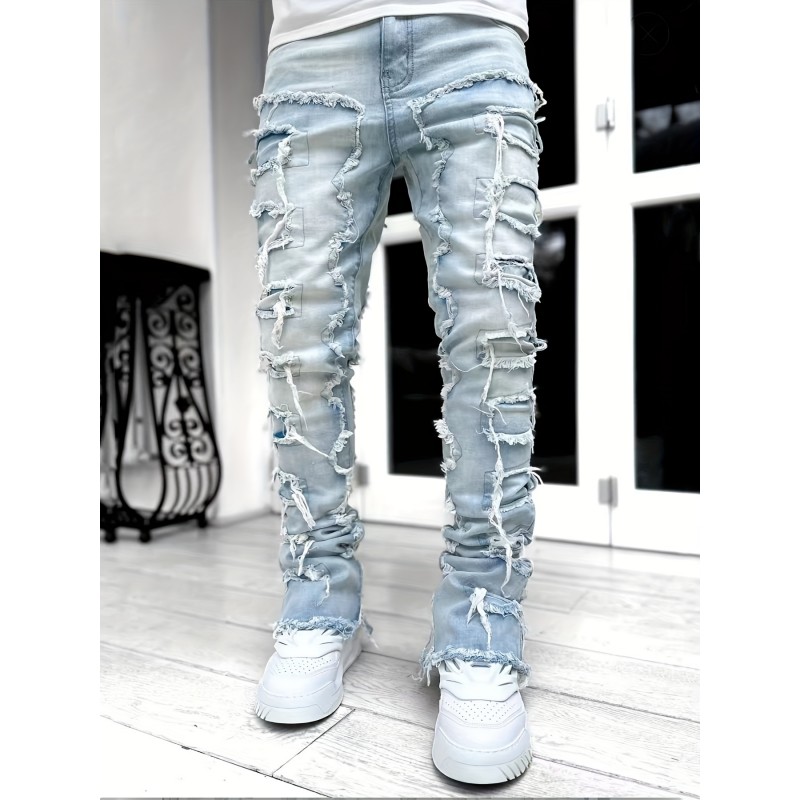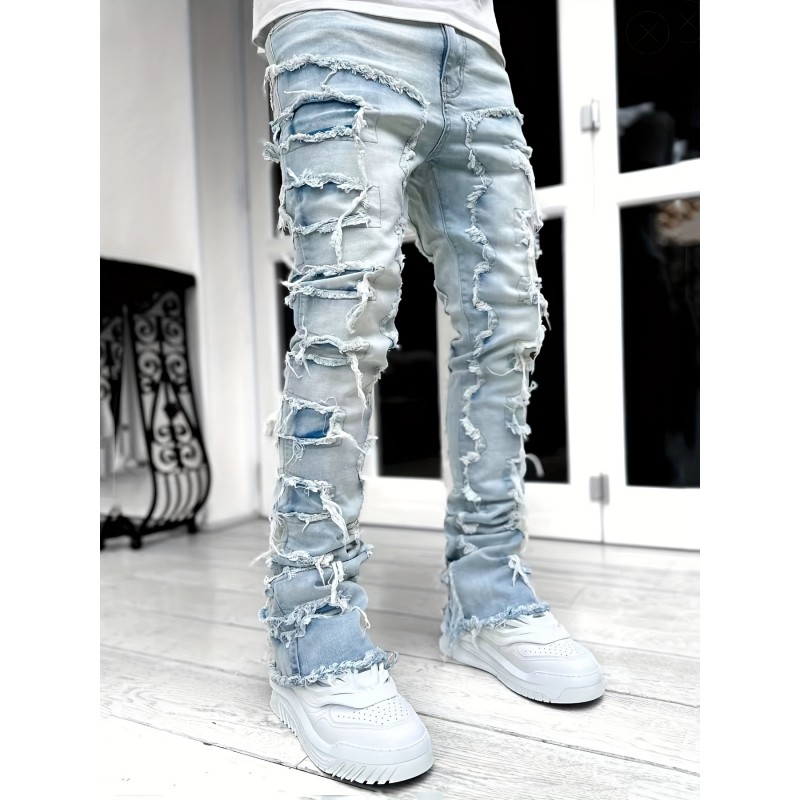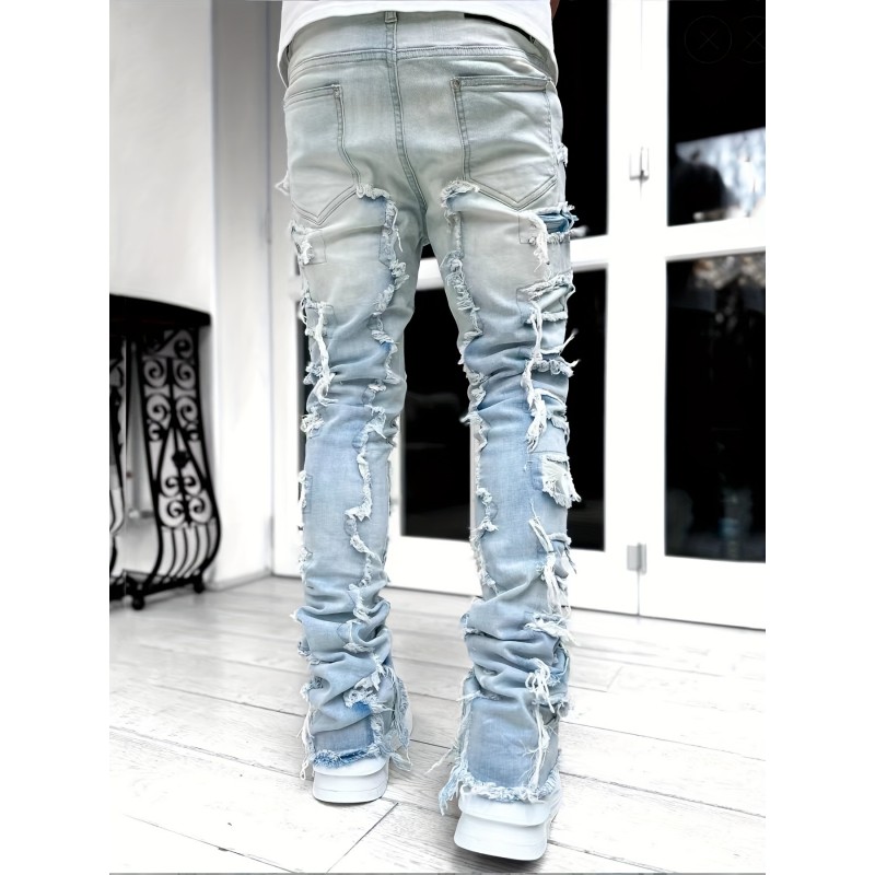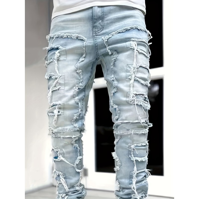 Men s Casual Raw Trim Jeans, Chic Street Style Skinny Jeans details 0