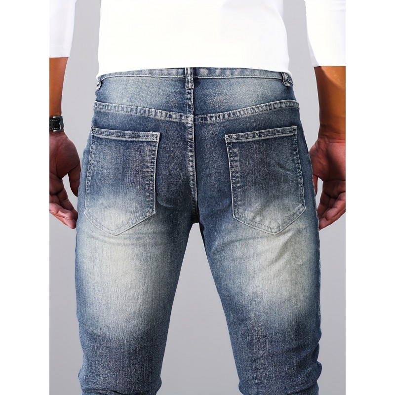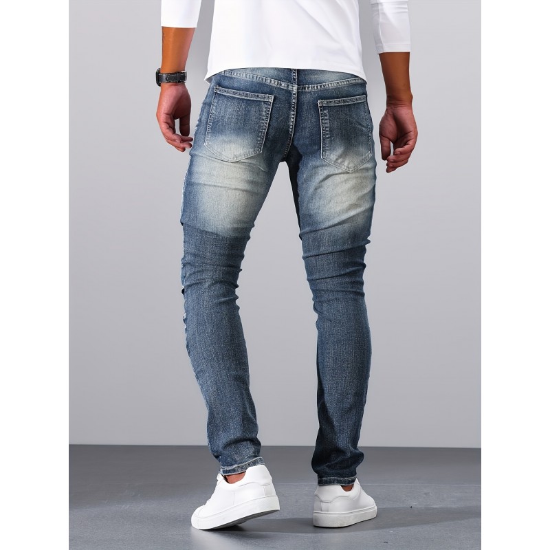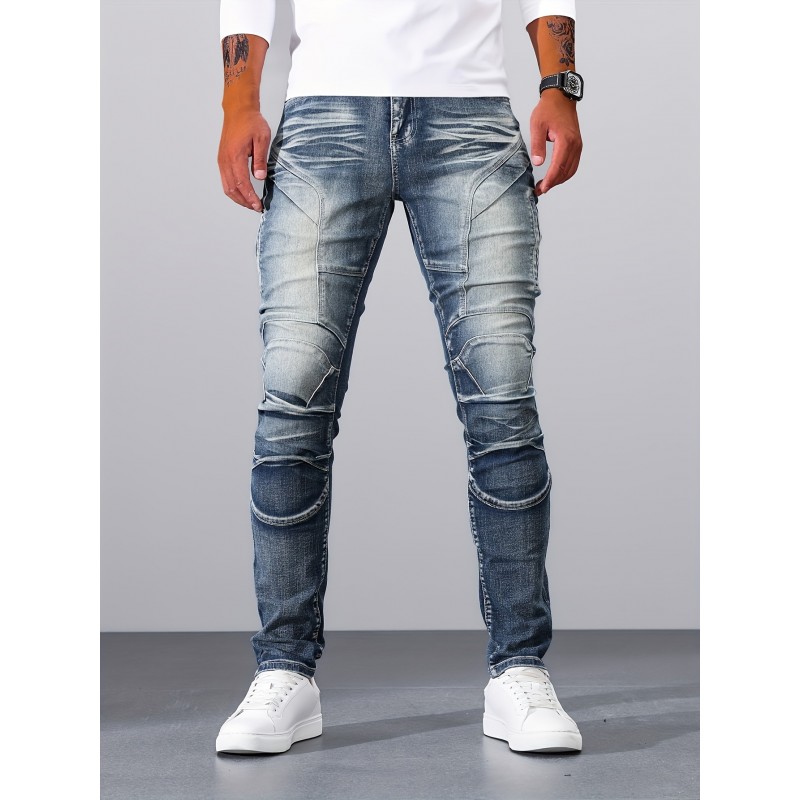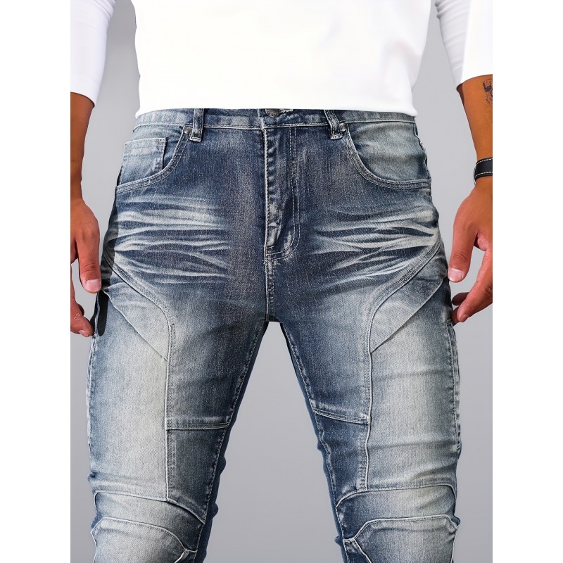 Men's Casual Vintage Style Denim Pants, Street Style Skinny Biker Jeans