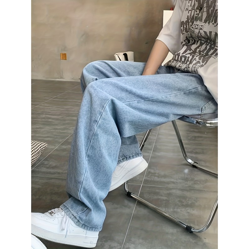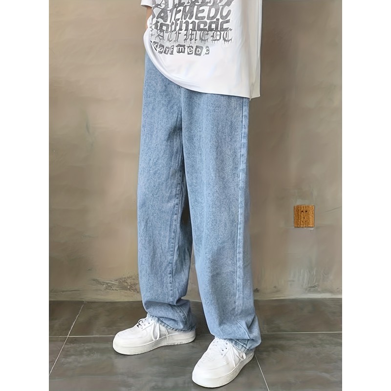 Men's Loose Wide Leg Jeans, Casual Street Style Denim Pants