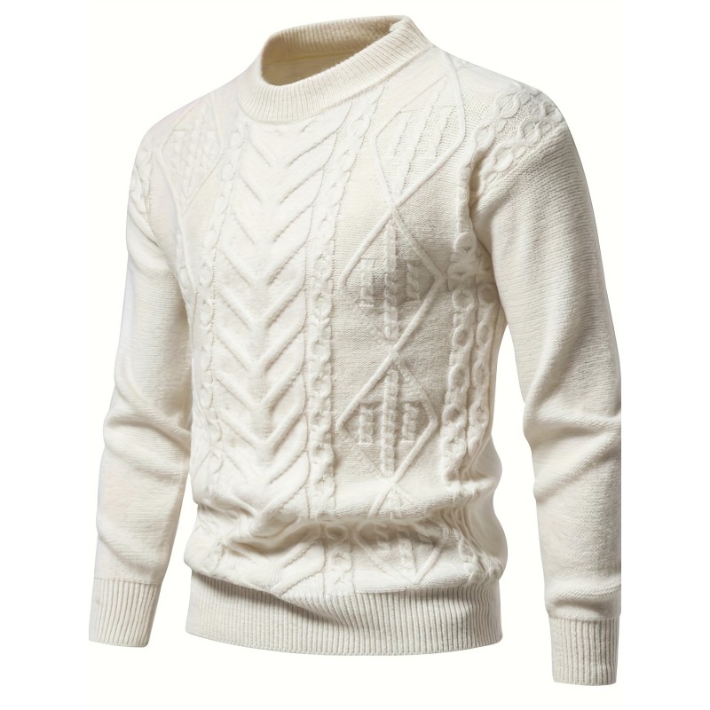 mens stylish solid knitted pullover casual mid stretch breathable long sleeve crew neck top for city walk street hanging outdoor activities details 29