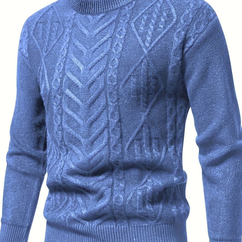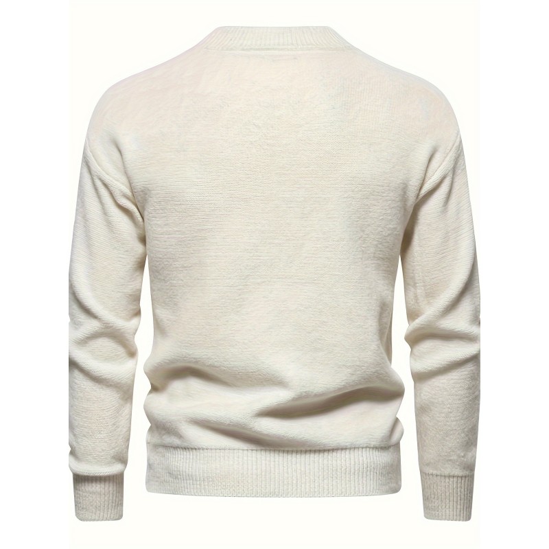 mens stylish solid knitted pullover casual mid stretch breathable long sleeve crew neck top for city walk street hanging outdoor activities details 1