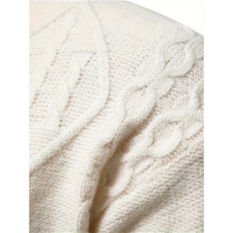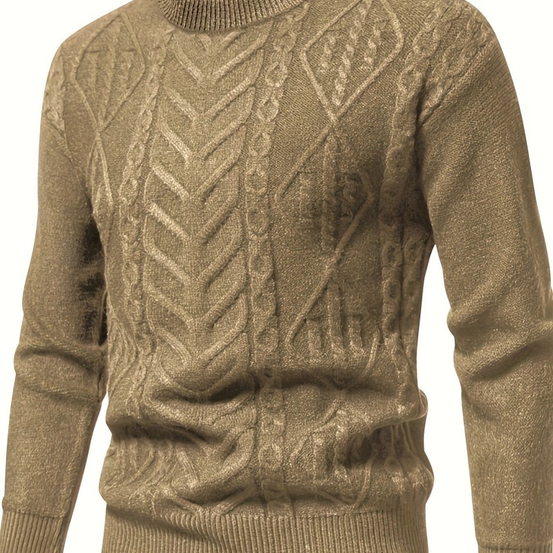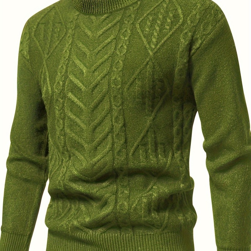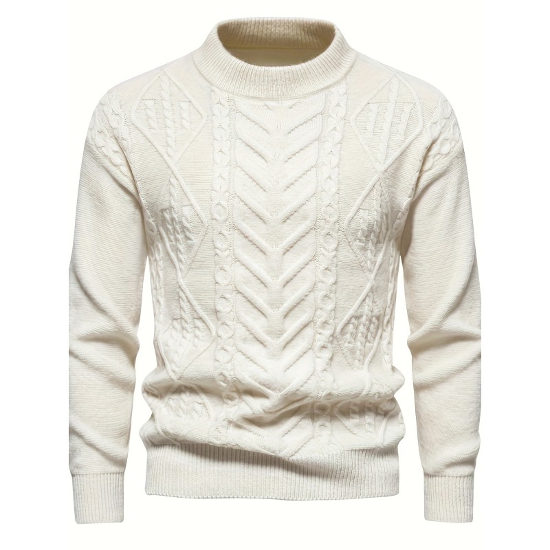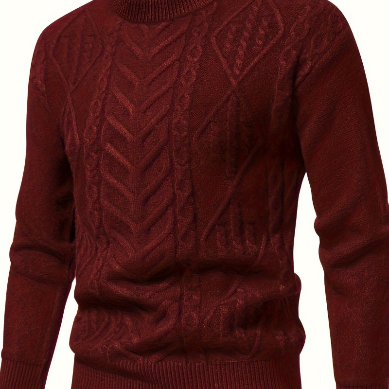 mens stylish solid knitted pullover casual mid stretch breathable long sleeve crew neck top for city walk street hanging outdoor activities details 16