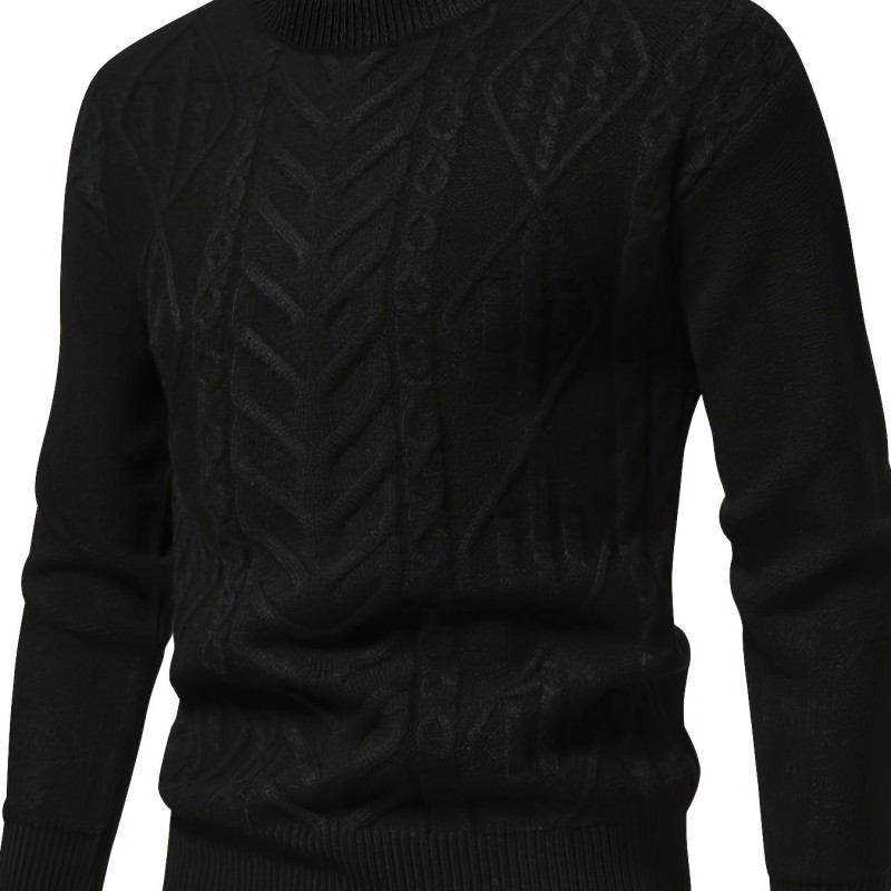 mens stylish solid knitted pullover casual mid stretch breathable long sleeve crew neck top for city walk street hanging outdoor activities details 0