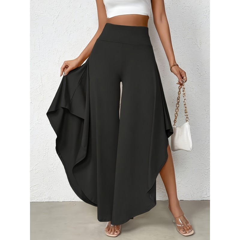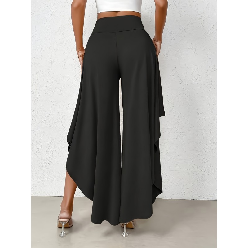 Ruffle Trim Wide Leg Split Pants, Casual Loose Pants For Spring & Summer, Women's Clothing