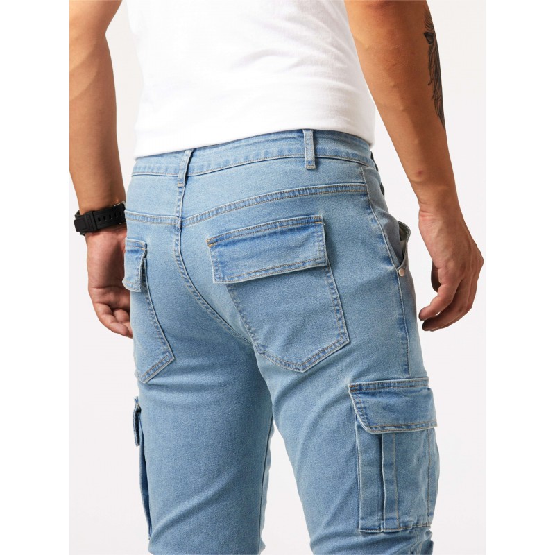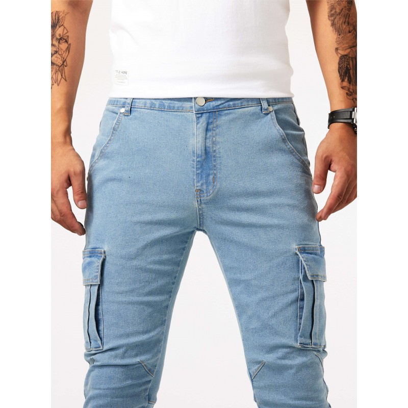 slim fit multi pocket jeans, slim fit multi pocket jeans mens casual street style medium stretch denim cargo pants details 0
